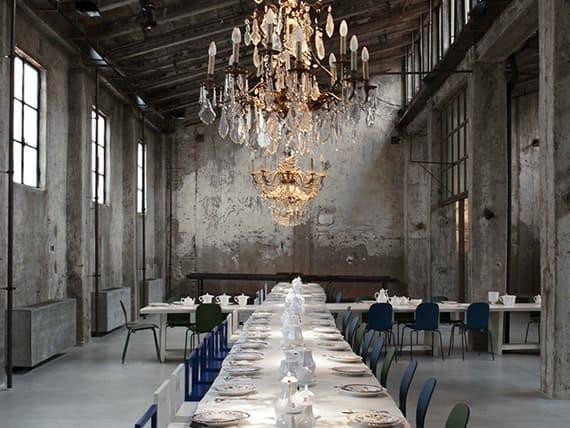 Мишленовский ресторан на заброшенной лесопилке в районе Навильи. Ответственная за дизайн Таня Сольчи почти полностью сохранила обстановку заброшенного индустриального цеха и ограничилась несколькими хрустальными люстрами над длинными белыми столами. Ресторан не новый, открылся в 2014 году, но по-прежнему интересный.