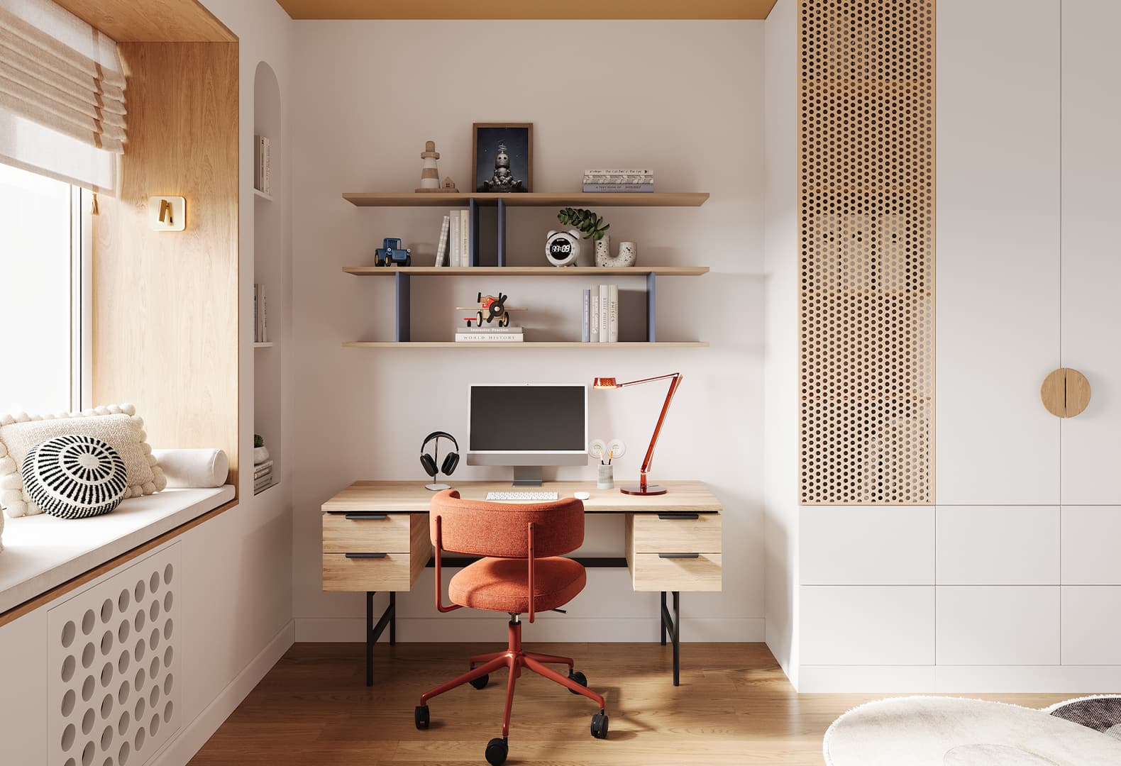 Этот интерьер выполнен в современном стиле с элементами джапанди. Так как концепция разрабатывалась для семьи из трех человек, дизайнер предусмотрела личное пространство для каждого. В центре квартиры находится общественная зона для совместного отдыха и общения: заказчики видели ее как воздушное и комфортное помещение, одинаково подходящее для тихих семейных вечеров и посиделок с гостями. Для хранения вещей здесь организованы вместительные шкафы и комоды, а также отдельная гардеробная.