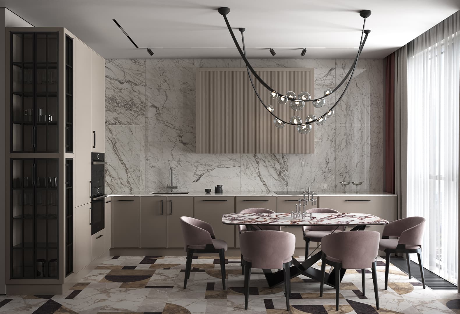 Дизайнер стремилась создать уютное, технологичное и вместе с тем персонализированное пространство для современного человека, для которого эстетика не менее важна, чем практичность и комфорт. Источником вдохновения автора выступила игра света на стекле: этот образ воплотился в чувственных формах и изысканных сочетаниях цвета и фактуры. Концепция опирается на идею эмоциональной связи человека с пространством: по задумке Анны Букиной, цветовая гармония и взаимодействие материалов в ее интерьере формируют комфортную обстановку не только на физическом, но и на психологическом уровне.