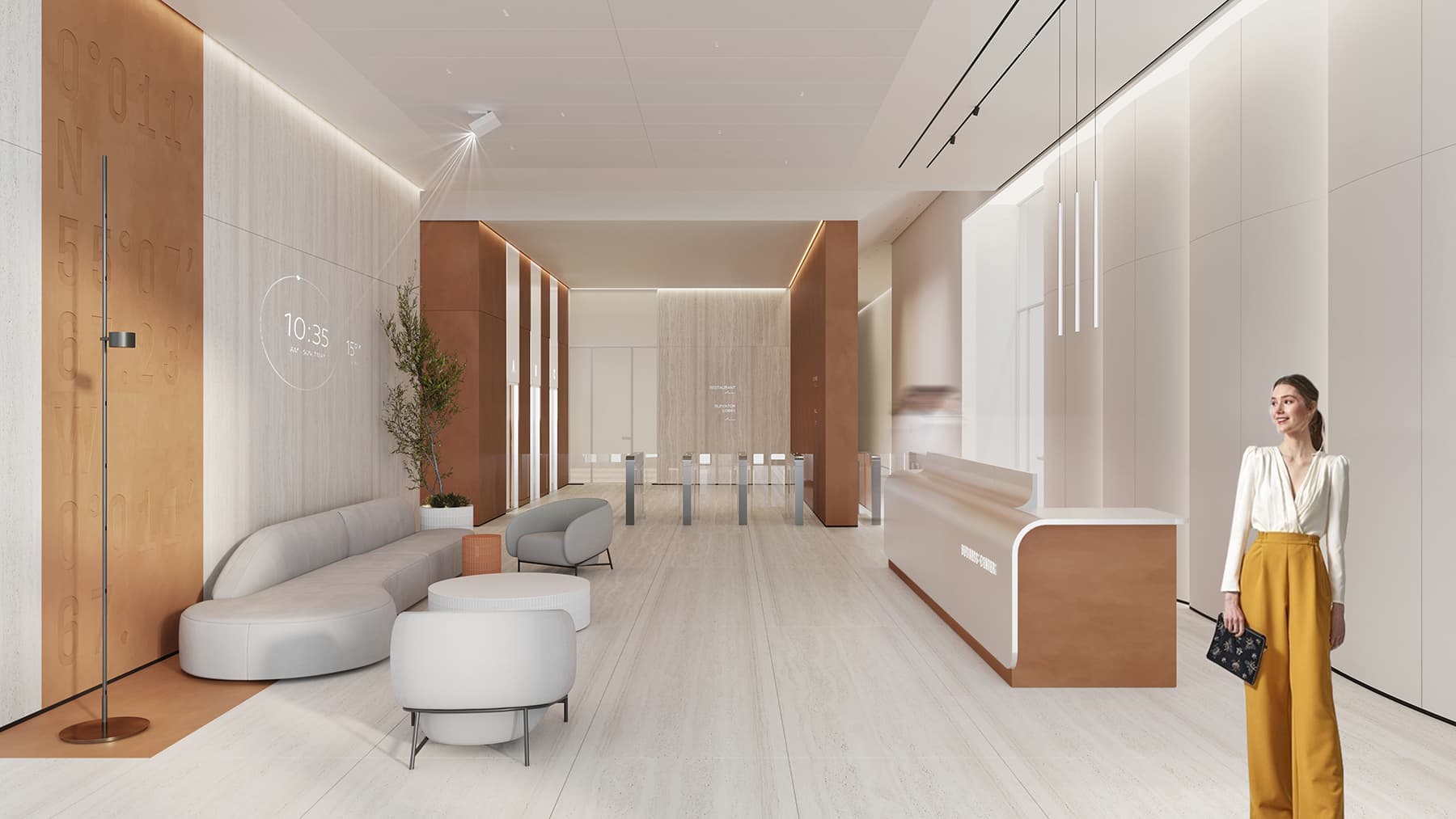 Интерьеры входной группы бизнес-парка Переделкино у метро Пыхтино. Изображение: MORS ARCHITECTS