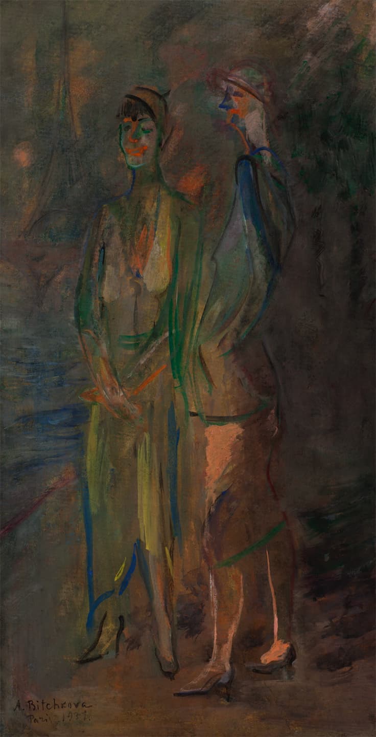 Две парижанки на фоне Эйфелевой башни Александра Кольцова-Бычкова, 1931