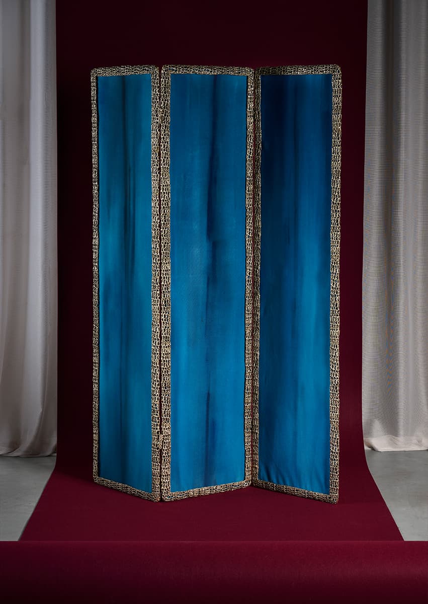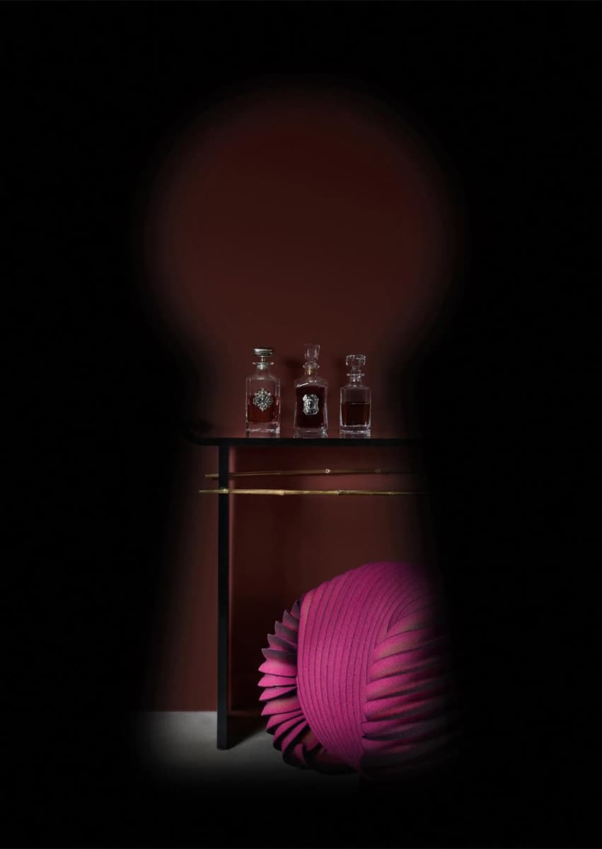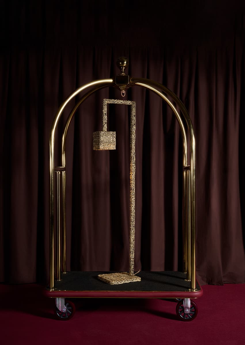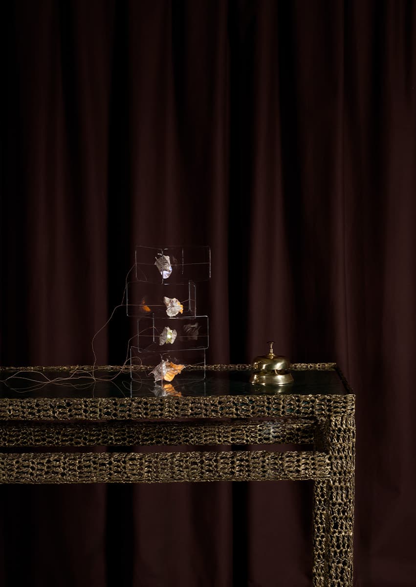 Экспозиция приглашает гостей отправиться в иммерсивное путешествие по пространствам, раскрывающим разные зоны отеля через призму коллекционного дизайна. Сначала посетители оказываются в вестибюле с ресепшн — это переходный момент, сочетающий в себе приветствие, паузу и знакомство. Следующее импровизированное помещение — главный атриум, задуманный как среда для общения, где мебель и освещение способствуют диалогу и обмену мнениями. В лаунже керамический стол Aloe Candelabra Лолы Монтес соседствует с текстильными объектами Zakuro Марко Мастроянни и Джованни Яконо и потолочными светильниками Thyrsus авторства Кристиана Пеллиццари. Композиция дополнена коврами cc-tapis, цвета и текстуры которых задают атмосферу пространства.