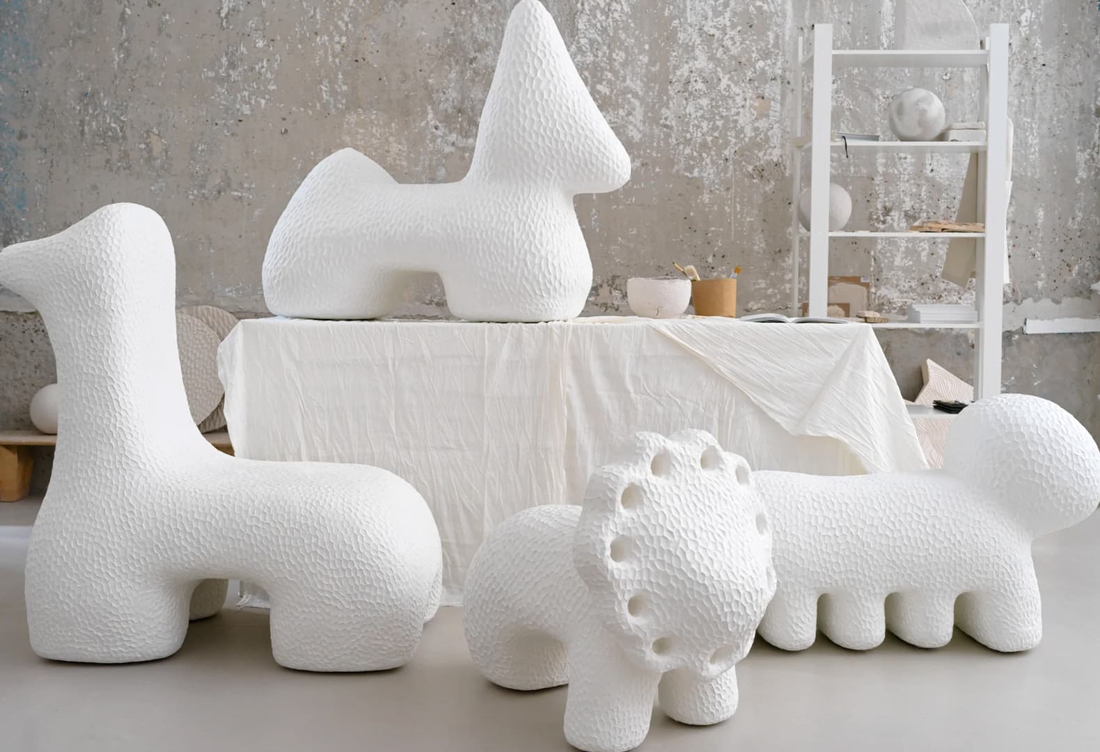 Во время ярмарки в дизайн-квартале Майами появились скульптурные объекты биоморфных форм. Так британский дизайнер Лара Бохинц презентовала свою новую коллекцию outdoor-мебели. Все объекты выполнены из пробки и окрашены в нежные пастельные тона. Несмотря на замысловатые объемные силуэты, скамьи, кресла и столики получились эргономичными и функциональными.