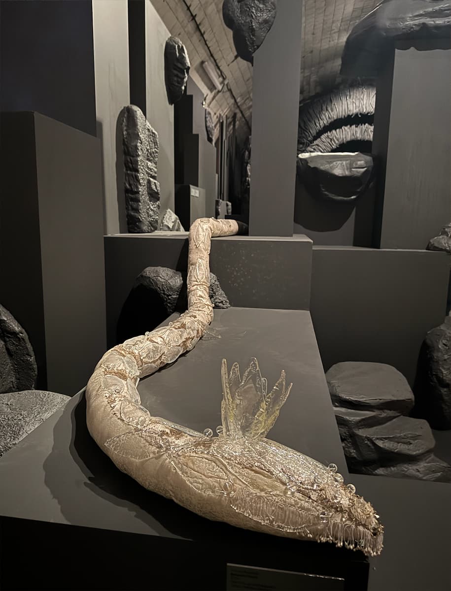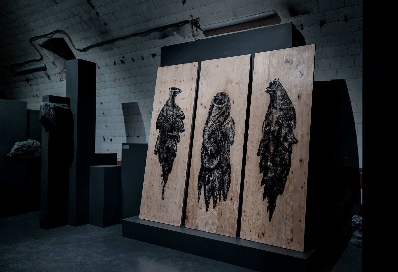 Работы Дани Пирогова из проекта «Дикое подземное» обращаются к теме подземного как к метафоре внутреннего опыта. Художник не следует буквальной логике преданий о земнородных чудовищах, пещерных лабиринтах и зарытых сокровищах, но ищет в самой тьме способ ощутить форму неведомой стихии. Его визуальное размышление об образах скрытой от глаз силы превращается в опыт внутреннего нисхождения — погружения в черную бездну земли или собственного «Я». Создавая архаичные и тревожные формы, которых словно породила сама стихия, Пирогов возвращает зрителя к состоянию первобытного контакта с «иным», не поддающимся рациональному объяснению.