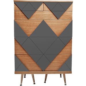 Вообще, намеков на советскую эпоху в проекте немало. Например, узор на обоях в гостиной и спальне отчетливо напоминает первые советские телевизоры, а серый керамогранит на кухне (Caesar) и графичная плитка в санузле и прихожей (Equipe) по-новому интерпретируют традиционное напольное покрытие в советских интерьерах.