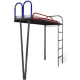 Кровать-чердак сделана из металлических трубок разного диаметра по чертежам архитекторов. Рабочий стол и светильник – IKEA.