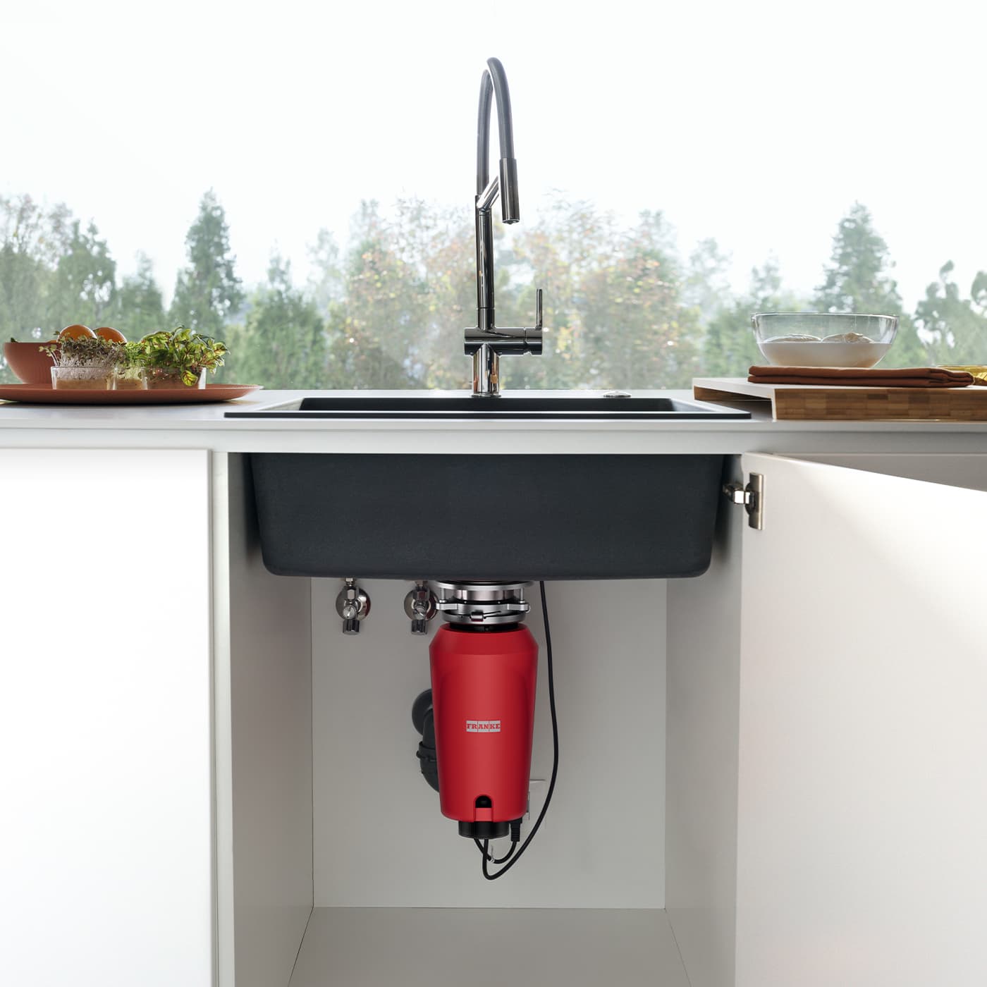 Поддерживать порядок и чистоту помогает и измельчитель пищевых отходов Franke Slimline. Он перемалывает отходы и отправляет их напрямую в канализацию, предотвращая засоры и снижая объем мусора в ведре. Отсутствие режущих элементов делает его безопасным, а лаконичный дизайн экономит место под мойкой.